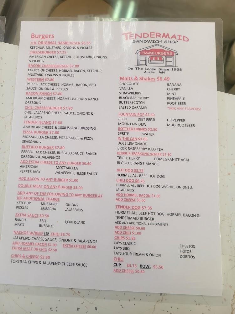 Welcome to Tendermaid Sandwich Shop, your go-to destination in Austin, MN, for delicious loose meat burgers and delightful old-fashioned malts and shakes. Located at 217 4th Ave NE, our cozy eatery offers a relaxed ambiance perfect for solo diners and families alike. Enjoy fast service, whether you choose to dine in on our patio or order takeout. Our menu features simple, traditional comfort food ideal for lunch or dinner. With accessible seating, parking options, and dog-friendly outdoor areas, Tendermaid is ready to serve everyone. Join us for a taste of nostalgia and savor the classic flavors that locals love!